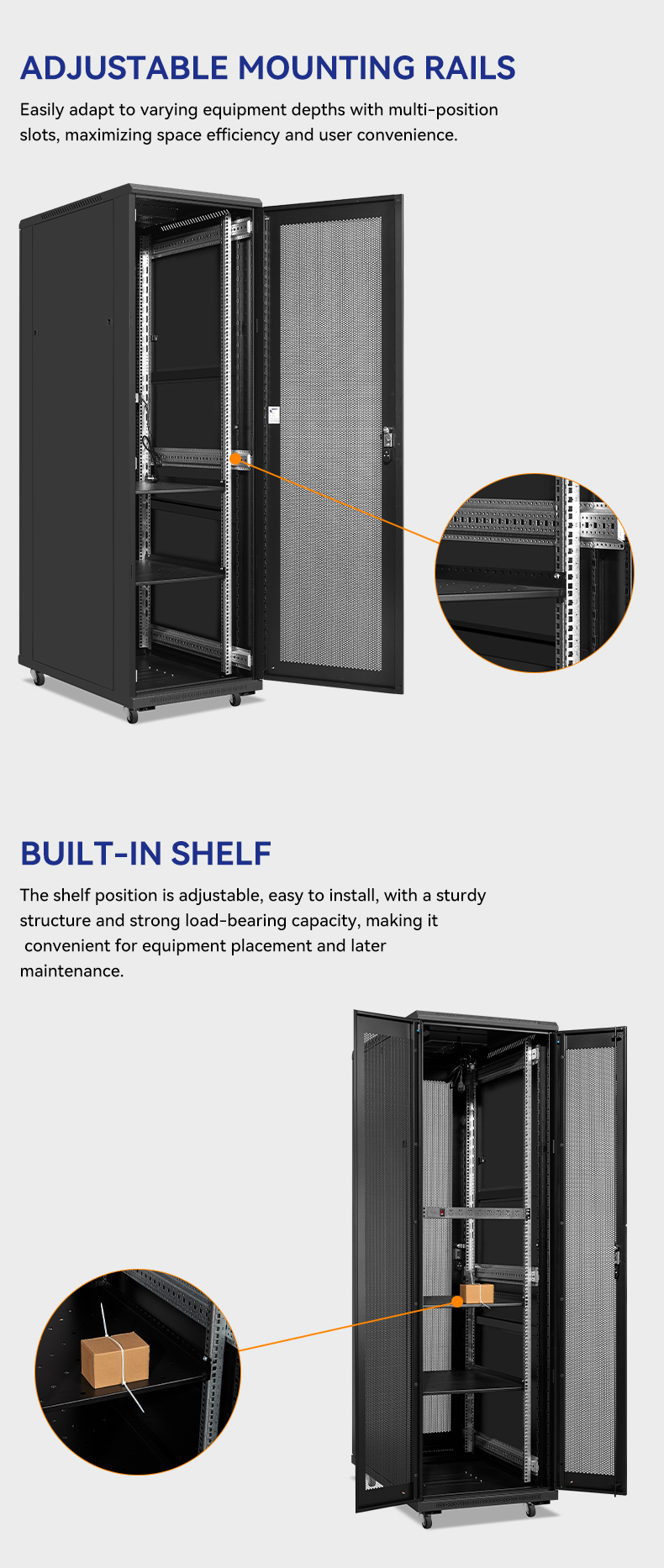 Easily adapt to varying equipment depths with multi-position slots, maximizing space efficiency and user convenience.